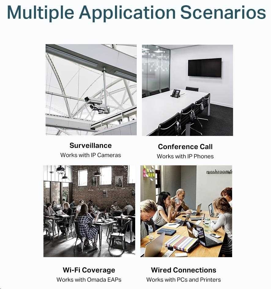 - Vysoký výkon PoE napájení, až 30 W pro každý PoE port a 250 W pro všechny PoE porty