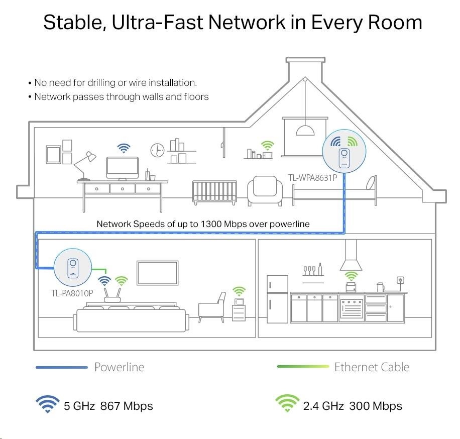 | Package Contents | AV1300 Gigabit Passthrough Powerline ac Wi-Fi KIT: 1× TL-WPA8631P, 1× TL-PA8010P; 2× Ethernet Cables; 1× Quick Installation Guide |