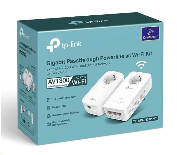TP-Link TL-WPA8631PKIT OneMesh/EasyMesh WiFi5 průchozí powerline set (AC1200,AV1300,2,4GHz/5GHz,3xGbELAN)