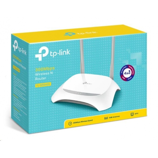 Bezdrátový router 300 Mbit/s Wireless N TL-WR840N je kombinované zařízení pro kabelové/bezdrátové připojení k síti určené především pro síťové požadavky malých firem a domácích kanceláří. Zařízení TL-WR840N nabízí výjimečný a pokročilý výkon bezdrátového připojení, a proto je ideální pro HD video streaming, VoIP a hraní online her. Navíc stisknutím tlačítka WPS (rychlé nastavení zabezpečení) na elegantním pouzdru zařízení lze snadno zabezpečit bezdrátové připojení šifrováním WPA2 a zamezit tak útokům na síť zvenčí.
