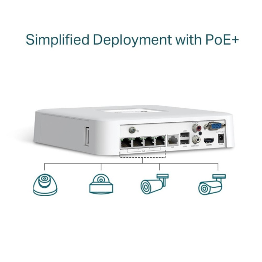 TP-Link VIGI NVR1104H-4P, videorekordér, 4 channels, 4xPoE, 1x100Mb/s LAN, 1xVGA,1xHDMI,2xUSB2.0
