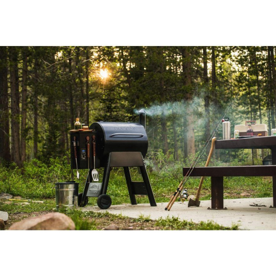 Tento elektrický gril na dřevěné pelety nabízí všestranný teplotní rozsah od nízkého nastavení pro pomalé "kouření" až po 450 °F, což umožňuje širokou škálu přípravy pokrmů včetně uzení, pečení a opékání. Je vybaven dvěma řadami porcelánem potažených ocelových roštů, které poskytují 572 čtverečních palců varné plochy a snadno se čistí. Pro optimální funkčnost a snadné použití je gril vybaven zásobníkem na pelety s kapacitou 18 liber a pohodlnou čisticí zásuvkou, která umožňuje rychlou výměnu příchutí pelet. Rychlé zahřátí a konzistentní regulaci teploty zajišťuje napájení 120 V AC a výkon 250 W. Pro zprovoznění stačí připojit přiložený 6stopý napájecí kabel AC do nejbližší zásuvky. Součástí balení je také jedna sonda na maso Traeger, která usnadňuje monitorování vnitřní teploty masa. Je důležité poznamenat, že tento model není vybaven připojením WiFIRE®.