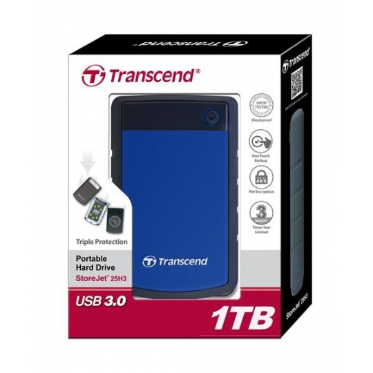 TRANSCEND externí HDD USB 3.0 StoreJet 25H3B, 1TB, Blue (nárazuvzdorný)