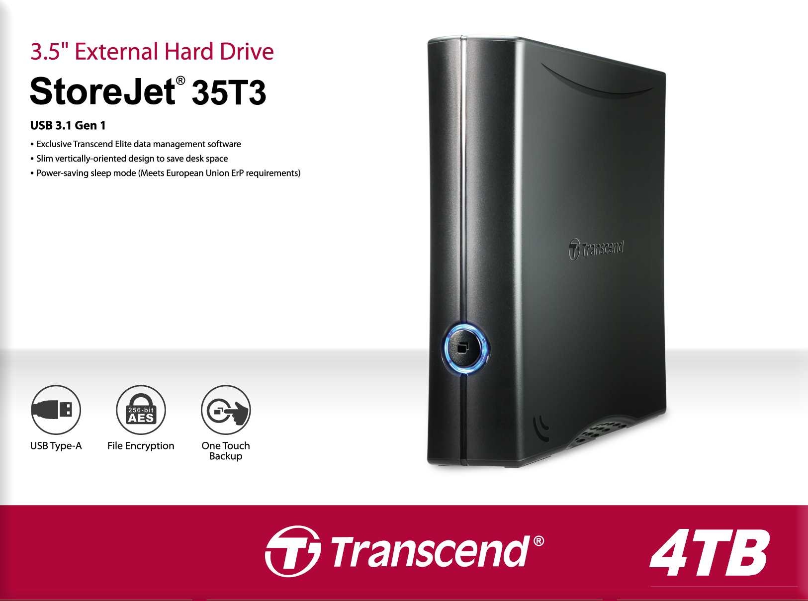 TRANSCEND externí HDD USB 3.0 StoreJet 35T3, 4TB, Black, Turbo