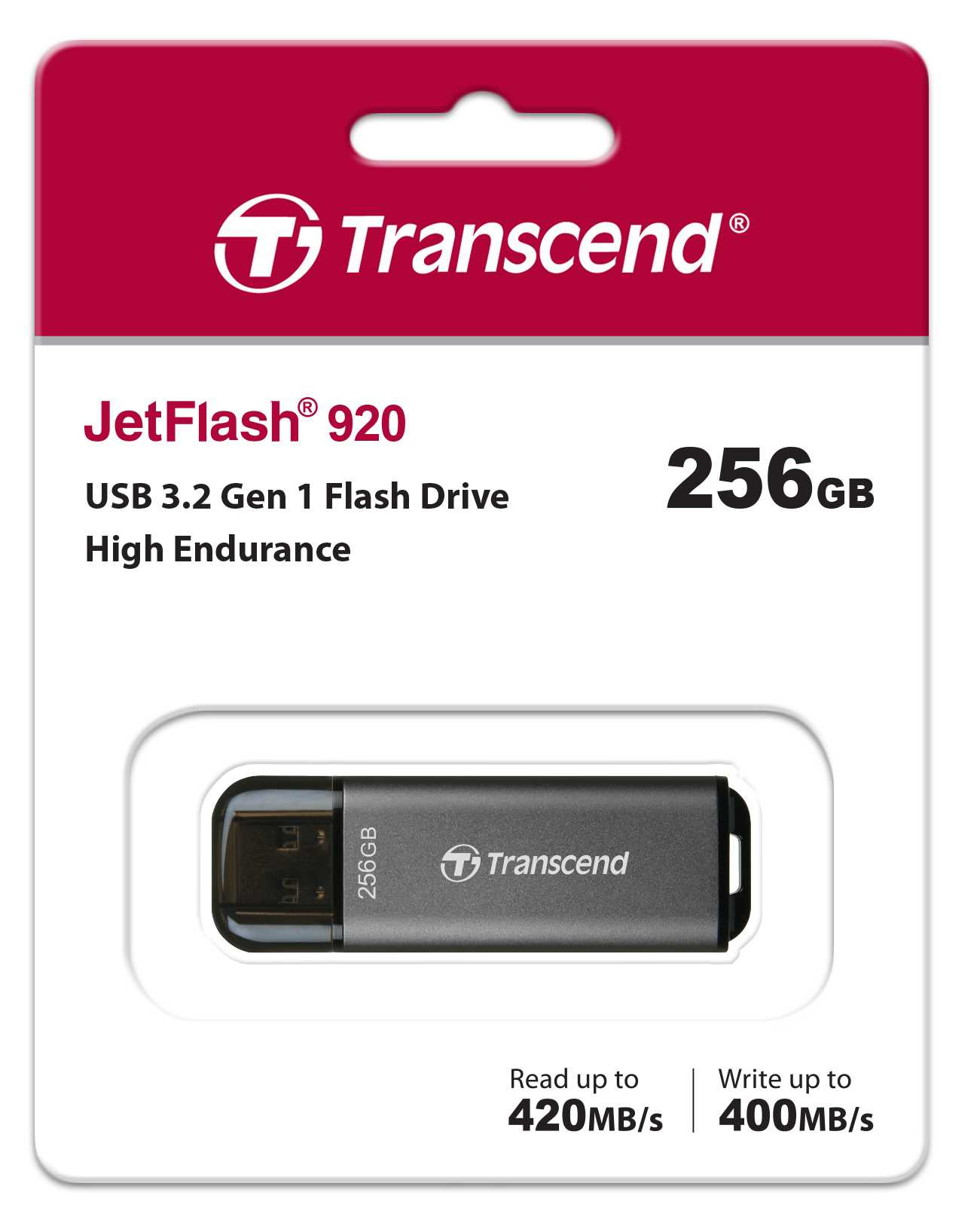 Introducing Transcend's high endurance, high performance JetFlash 920, a USB flash drive that is anything but ordinary. Boasting sensational read speeds of up to 420MB/s and write speeds of up to 400MB/s, the JetFlash 920 delivers top-notch performance in a sleek and portable design. Its aluminum metallic housing will safeguard your data wherever you go.