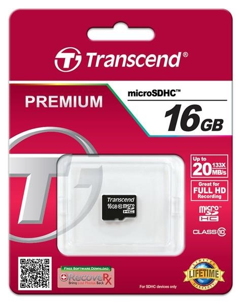 TRANSCEND MicroSDHC karta 16GB Class 10, bez adaptéru
