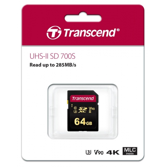 Transcend's SDXC/SDHC 700S memory cards meet both the UHS-II Speed Class 3 (U3) and the UHS Video Speed Class 90 (V90) standards for 4K Ultra HD video recordings, with read/write speeds of up to 285MB/s and 180MB/s respectively.