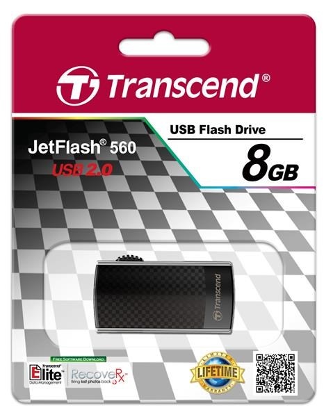 TRANSCEND Flash Disk 8GB JetFlash®560, USB 2.0 (R:18/W:4 MB/s) černá/stříbná