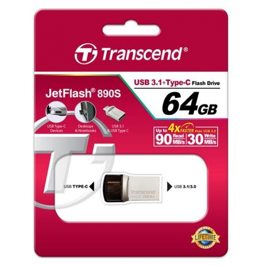 Meeting the new generation of USB Type-C technology, the JetFlash 890 USB 3.1 OTG Flash Drive features a dual connector - a reversible USB Type-C connector and a regular USB 3.1 (Gen 1) connector* - that is designed to transfer and back up your photos, music and videos between the latest USB Type-C port equipped devices such as MacBook and your PC, laptops and Mac computers. Plus, with the free-to-download Transcend Elite App, you can easily explore files on the JetFlash 890 and quickly back up all your precious files stored on your MacBook, smartphone and tablet.