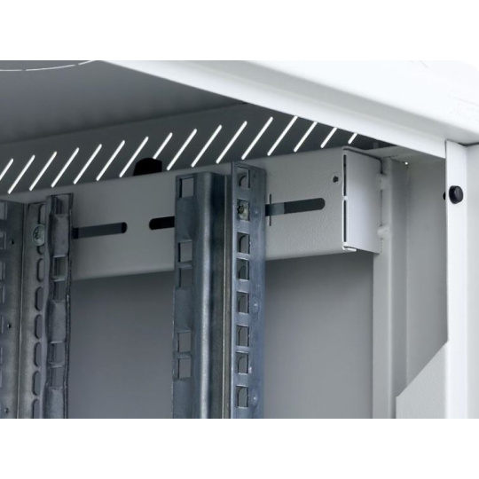 Dva páry 19“ vertikálních lišt jsou plynule nastavitelné v libovolné hloubce rozvaděče. To usnadňuje montáž zařízení i organizaci propojovacích kabelů.
