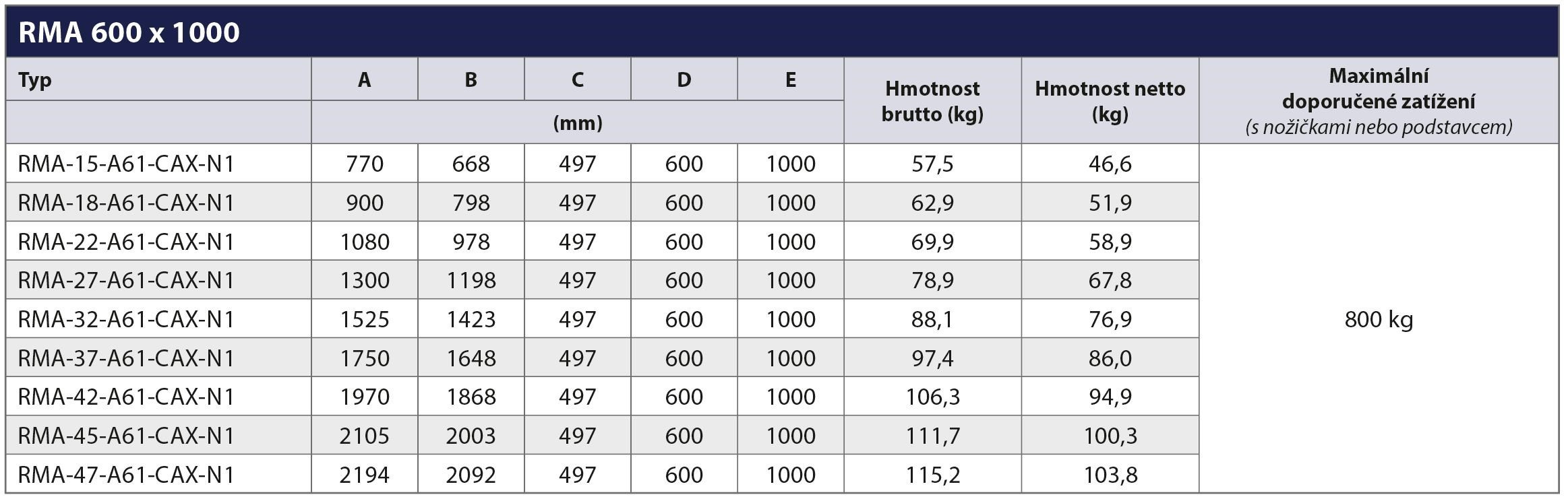 | Maximální zatížení: | 800 kg |