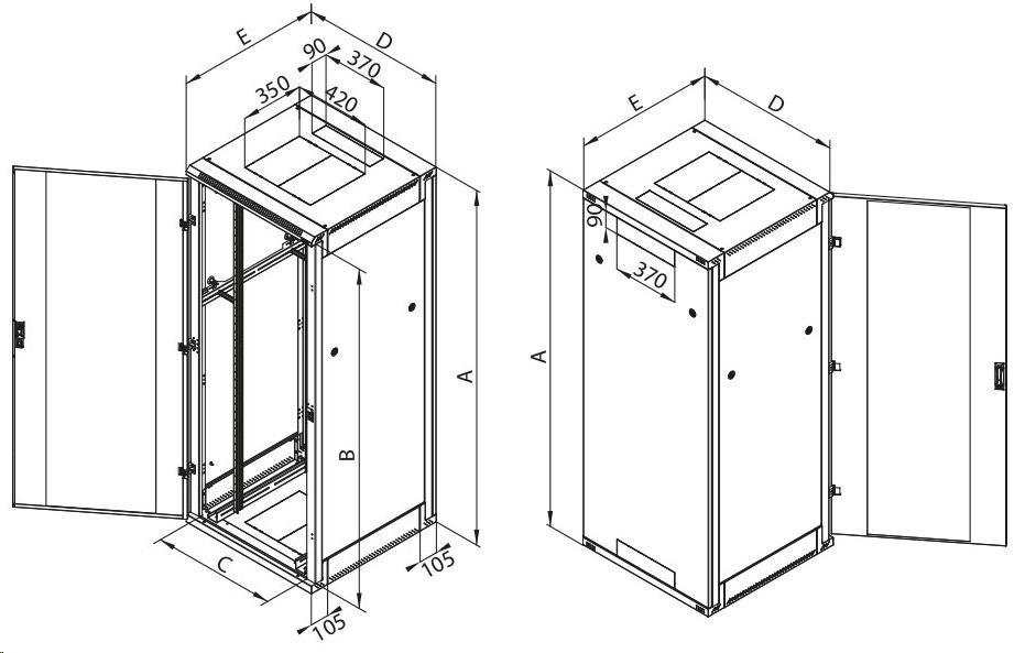 U tohoto typu rozvaděče je možno objednat speciální plechové dveře s přípravou pro montáž ventilačních jednotek RAx-CH-X0x-X3. Více informací naleznete v sekci „Aktivní chlazení“.