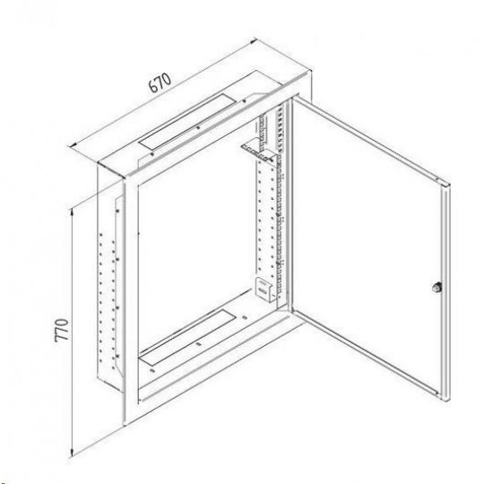Hybridní domovní rozvaděč SHA - IP20, nosnost 30 kg. Rozvaděč je určen k montáži pod omítku (model SGA) SVISLÁ MONTÁŽ V horní polovině je skříň vybavena posuvnými držáky pro osazení 19“ patch panely, případně jističovou vanou. VODOROVNÁ MONTÁŽ Na bocích v dolní polovině skříně jsou připraveny držáky pro 19“ zařízení. VYLAMOVACÍ ZÁSLEPKY Ve stropě a dně skříně jsou připraveny kabelové vstupy kryté vylamovacími záslepkami..