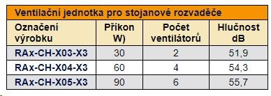 Ventilační jednotka pro stojanové rozvaděče – do čepice se instaluje z venkovní strany rozvaděče, do základny pak z vnitřní strany rozvaděče. Při instalaci do základny rozvaděče je nutno použít montážní rám spodní ventilační jednotky – RAx-CH-Xxx-X1, který se instaluje pomocí oboustranné lepící pásky.