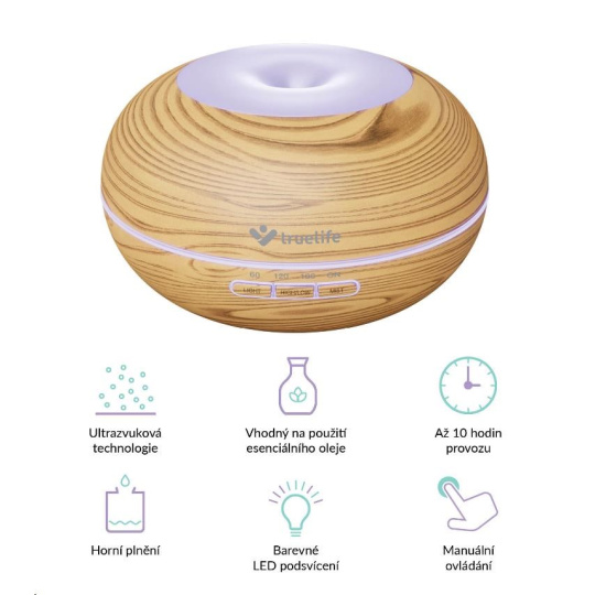icle id="description_truelife_2019-11-19"> TrueLife AIR Diffuser D5 Light – Aroma difuzér a zvlhčovač vzduchu Stačí stisknutí jediného tlačítka a aroma difuzér Truelife provoní vzduch v místnosti vaší oblíbenou vůní. Vytvoří vám příjemnou atmosféru pro relaxaci, cvičení jógy nebo meditaci. Stačí do nádržky s... více