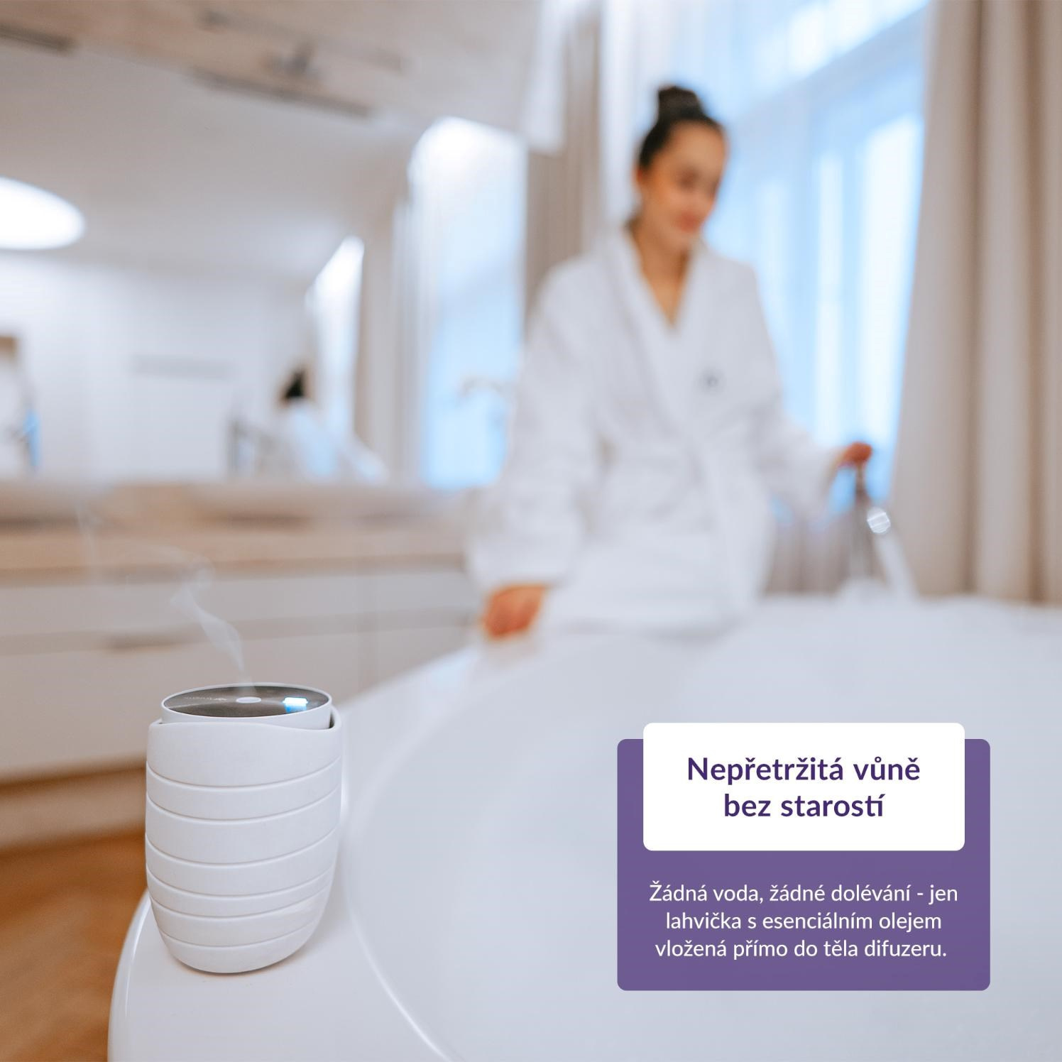 Difuzér pracuje tak tiše, že vás nebude rušit ani při spánku či meditaci.