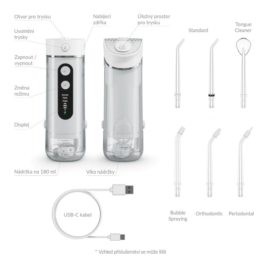 Ústní sprcha je vyrobena z prémiových materiálů, které neobsahují BPA a ftaláty.