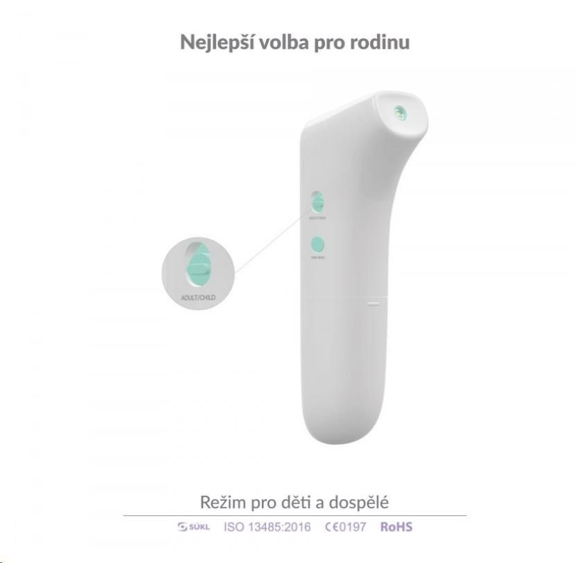 Teploměr nabízí dětský režim, který je uzpůsoben pro osoby mladší 12 let. Jeho zapnutí indikuje symbol miminka na displeji.