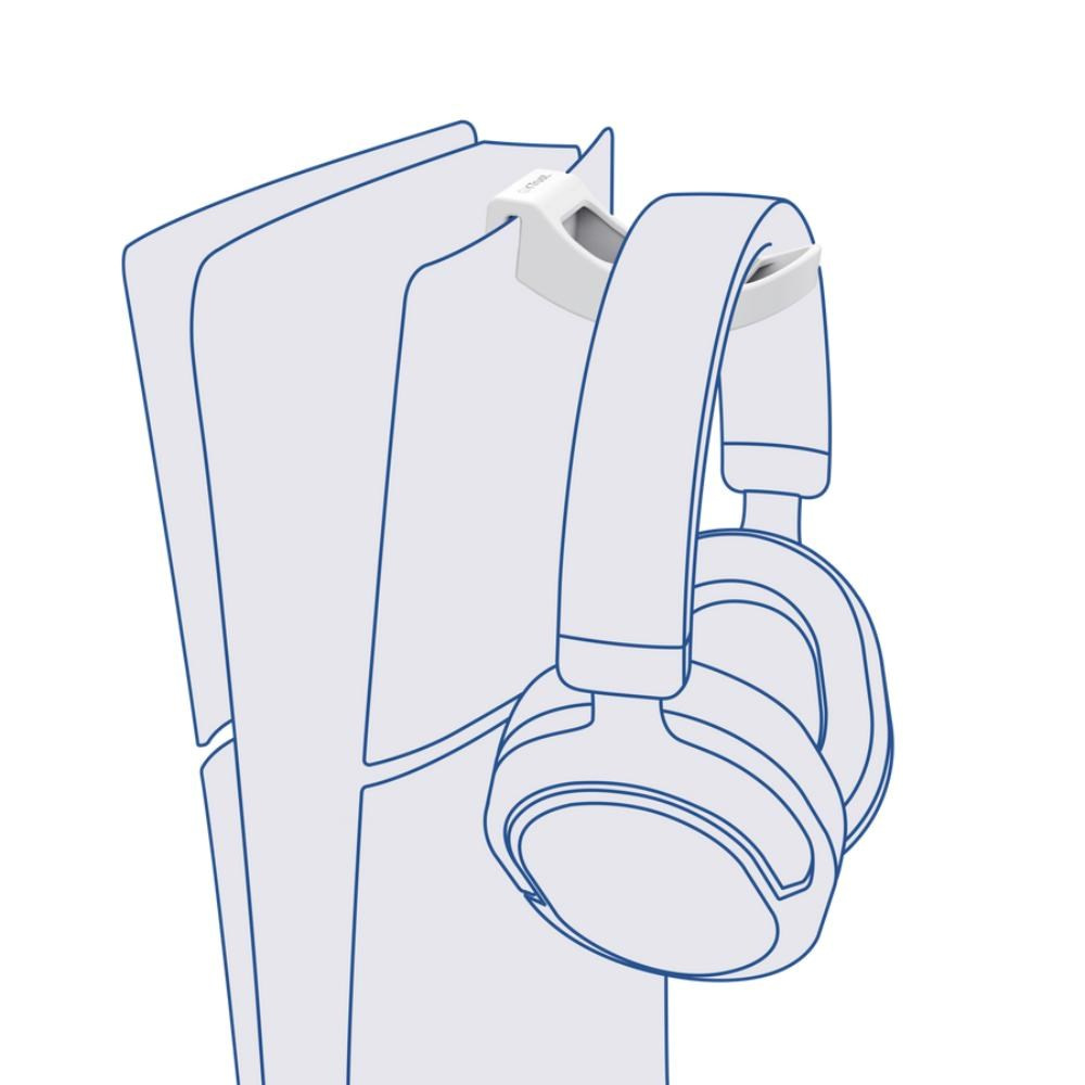 S tímto držákem na sluchátka PS5™ budete mít sluchátka v bezpečí a po ruce. Snadno se používá a bezpečně se připevňuje na horní část jakékoli konzole PS5™, zatímco silikonová vložka zabraňuje poškrábání. Tento robustní a stylový háček je dokonalým řešením pro úsporu místa v jakékoli sestavě – to je to, čemu říkáme PlayStation® perfect!