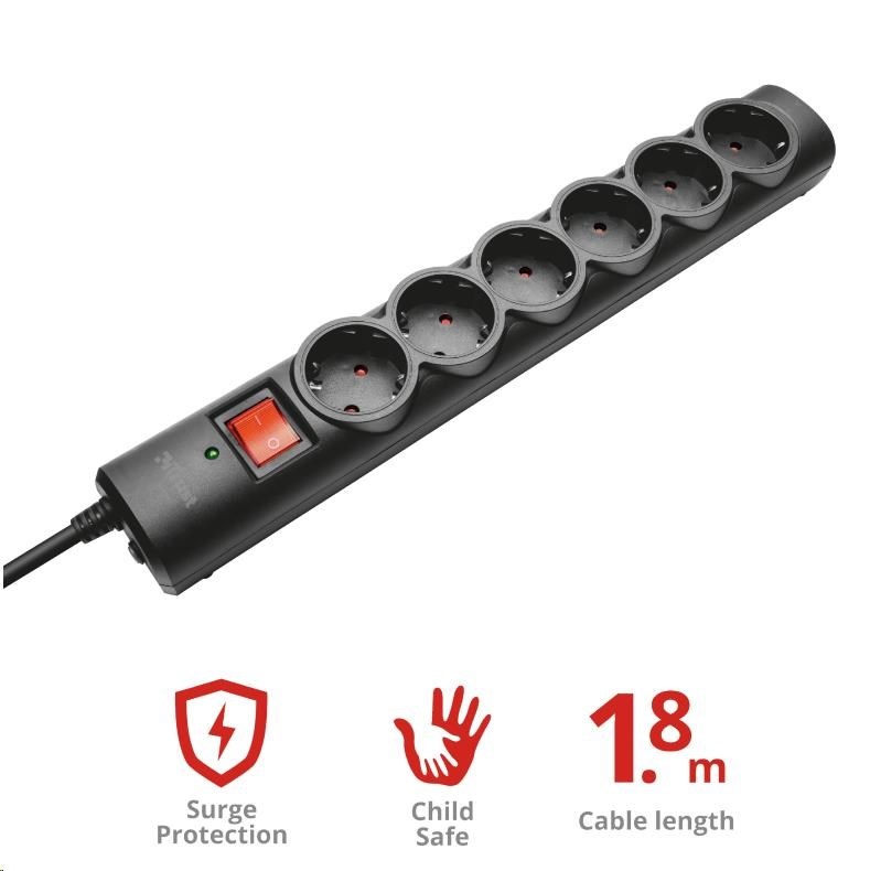 TRUST Surge Protector, Prodlužovací přívod, přepěťová ochrana 6 portů