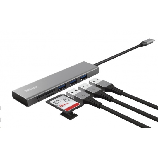TRUST rozbočovač HALYX, Fast USB-C Hub & Card reader