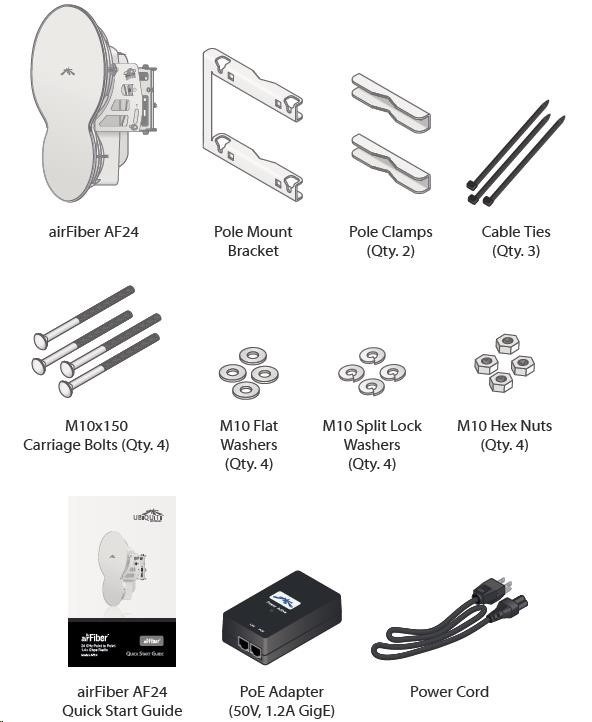 Ubiquiti airFiber AF24 je určený pro páteřní spoje, pracuje v nelicencované pásmo 24 GHz s reálnou propustností až 1,4 Gbps! Jednotka je vybavena dvěma parabolickými anténami z nichž jedna slouží pro příjem a druhá pro vysílání dat, technologie MIMO. Na výběr je několik režimů činnosti: FDD (Frequency Division Duplex) a HDD (Hybrid Division Duplex), díky kterým airFiber dosahuje vysoké rychlosti a spektrální účinnost. HDD systém nabízí nízké latence FDD systémů a spektrální účinnost TDD systémů. Podporován je Full Duplex i Half Duplex režim, transparentní L2 bridge a AES-128 bitové kryptování.