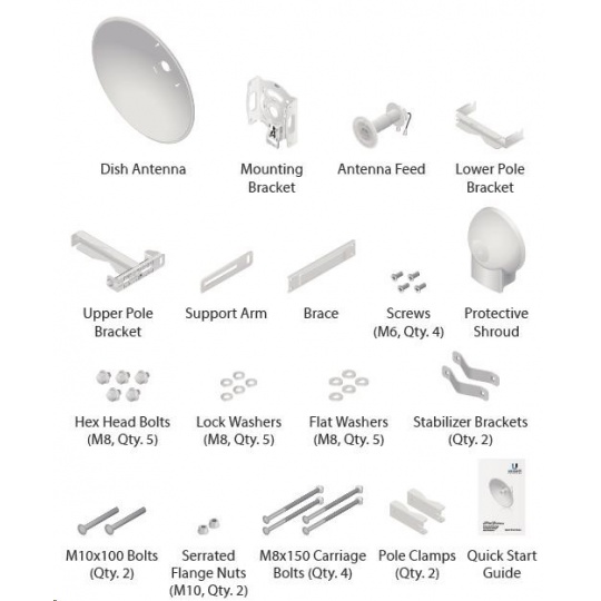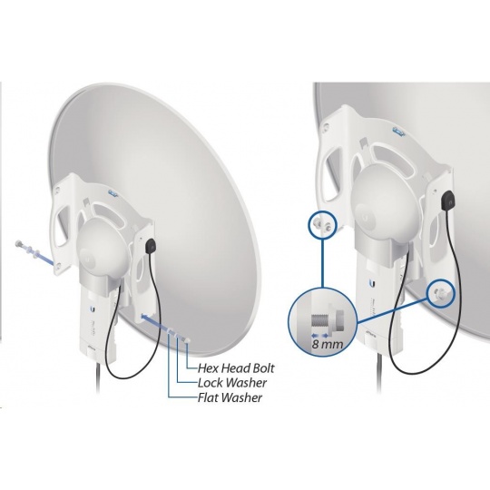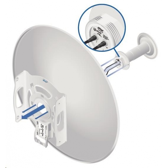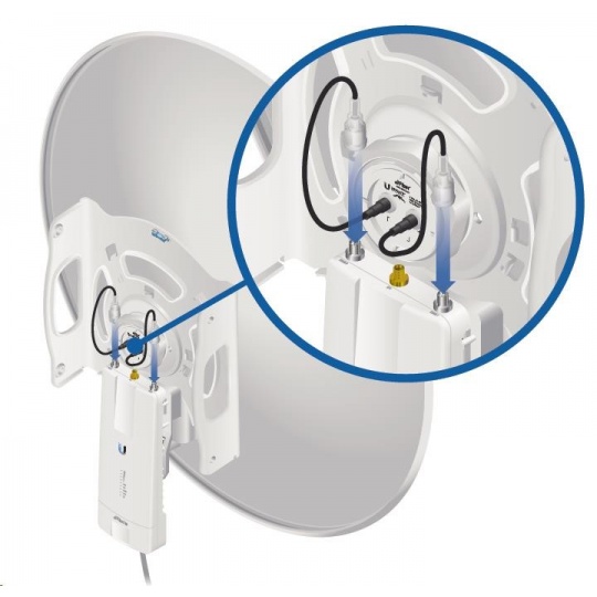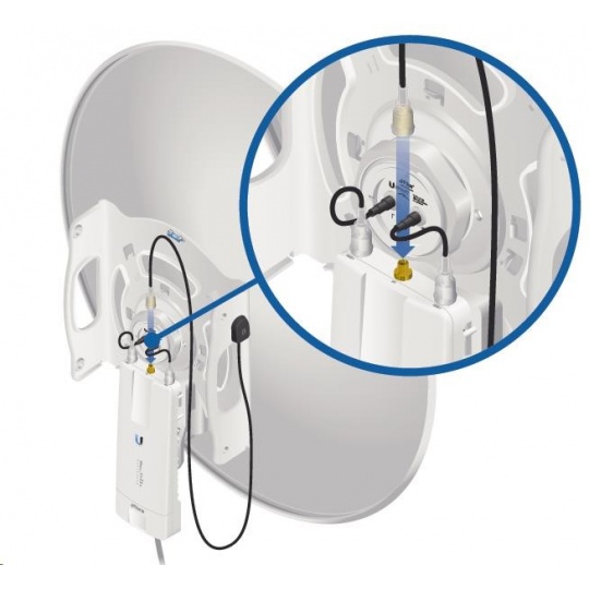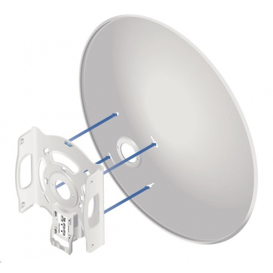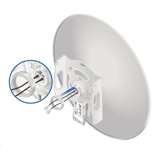 Speciální 5GHz směrová anténa určená pro airFiber-5X se ziskem 30dBi, průměr antény je 650mm. Úzká vyzařovací charakteristika (5°) a polarizace posunutá o 45° proti standartní H/V polarizaci garantuje nejvyšší možný poměr signálu a šumu (SNR) a vysokou odolnost vůči interferencím s jinými spoji.