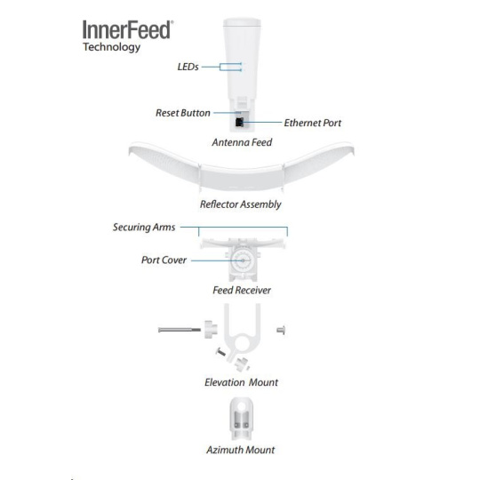 Uvnitř LiteBeamu se nachází výkonný MIPS procesor Atheros 74KC, kterému sekunduje 64MB operační paměti. Síťový port podporuje 10/100/1000 Ethernet a lze po něm jednotku napájet pasivním Gigabit PoE 24V/0,3A adaptérem, který není součástí balení.