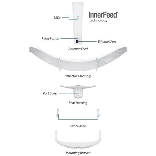 LiteBeam 5AC-LR kombinuje proprietární hardwarové a softwarové technologie do cenově dostupného zařízení. Mezi výhody patří InnerFeed technologie, airMAX TDMA protokol, vylepšený držák a vestavěná vodováha umožňující velmi rychlé a správné nasazení a také velmi kompaktní rozměry pro úsporu nákladů při přepravě.