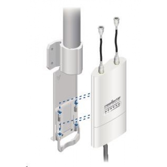 Jedná se o robusní řešení 13dbi všesměrové antény pro přístupové body pracující v pásmu 5GHz a využívajících standardu 802.11n v kombinaci s technologií MIMO. Anténa disponuje dvěma RSMA-female konektory. Součástí dodávky jsou dva voděodolné RSMA pigtaily pro propojení s jednotkou Rocket M5, držák pro tuto jednotku a montážní sada na stožár, viz. obr.