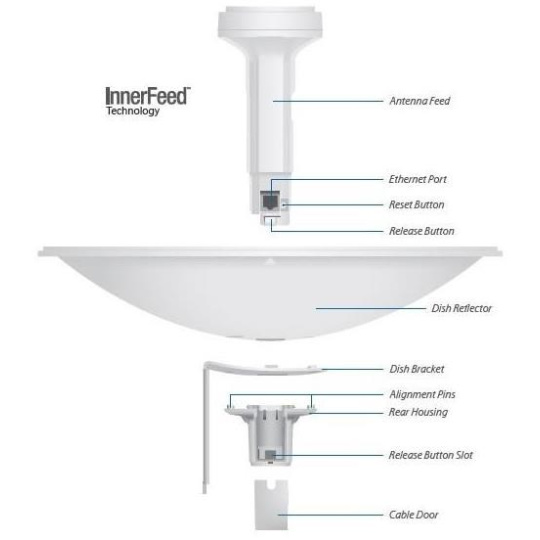 Popis produktu PowerBeam vychází z dřívější velmi úspěšné řady produktů NanoBridge. Nově obsahuje výkonější hardware a chytřejší konstrukci. Konstrukce byla maximálně zjednodušena a instalace v terénu je nyní rychlejší a pohodlnější, pro zajímavost bych zmínil tlačítko pro uvolnění zářiče což byl problém u starší generace. Uvnitř PowerBeamu se nachází výkonný MIPS procesor Atheros 74KC s frekvencí 560MHz, kterému sekunduje 64MB operační paměti typu DDR2 a 8MB Flash paměť. Síťový port podporuje 10/100 Ethernet a lze po něm jednotku napájet pasivním PoE 24V/0,5A (aktivní PoE dle 802.3af není podporováno). Teoretická maximální propustnost jednotky je 300Mbit (MCS15, 802.11n, 2x2MIMO, při šířce kanálu 40MHz). InnerFeed technologie InnerFeed™ technologie integruje rádiovou část do zářiče od antény čímž odpadá potenciální ztráta na RF kabelu. Ekcelentní směrovost Tvar a velikost PowerBeamu nabízí nejvyšší možný zisk antény. Navíc díky ekcelentní směrovosti Vám bude PoweBeam skvěle pracovat i ve více zarušeném prostředí. Největší výhodou jakéhokoliv airMAX zařízení je vedle vysoké přenosové rychlosti díky standardu 802.11n využití časového multiplexu TDMA. Protokol TDMA airMAX umožňuje vynikající škálovatelnost a vysokou propustnost při zachování nízkých latencí v PtMP sítích. Obsah balení • Zařízení • Parabola • PoE napájecí zdroj • Napájecí kabel • Plastová část pro uchycení zářiče • Držák Technické parametry Bezdrátové vlastnosti Bezdrátové frekvence:5 GHz WiFi standardy:airMAX, 802.11a, 802.11n Přenosová rychlost - 5GHz [Mb/s]:300 Vysílací výkon 5GHz [dBm]:26 Šifrování:WPA2 AES 5GHz MIMO:2 x 2 Typ antény:Vestavěná Počet vestavěných antén:2 Zisk antény [dBi]:22 Konektory a rozhraní Rychlost LAN:(1) 10/100Mbps Napájení Napájení přes PoE:24V DC Typy PoE:PoE-In (pouze) Max. spotřeba energie [W]:6 Fyzické charakteristiky Použití:Venkovní Tlačítka:Reset Provozní teplota [°C]:-40 až 70 Hmotnost [g]:1203 Šířka [mm]:325 Výška [mm]:325 Hloubka [mm]:256 Hardware CPU:MIPS 74Kc Frekvence CPU [MHz]:560 RAM [MB]:64 Software Operační mód:Klient, Repeater, AP Router, Access Point, Klient Router (wisp) Podpora IPv6:Transparentní (režim bridge) Výchozí IP adresa:192.168.1.20 Výchozí jméno a heslo:ubnt / ubnt.