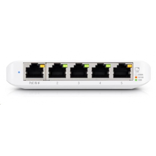 USW-Flex-Mini je maličký 5-portový Gigabitový switch se správou přes UniFi Controller od Ubiquiti Networks v desktop provedení s prvním portem podporující PoE In.