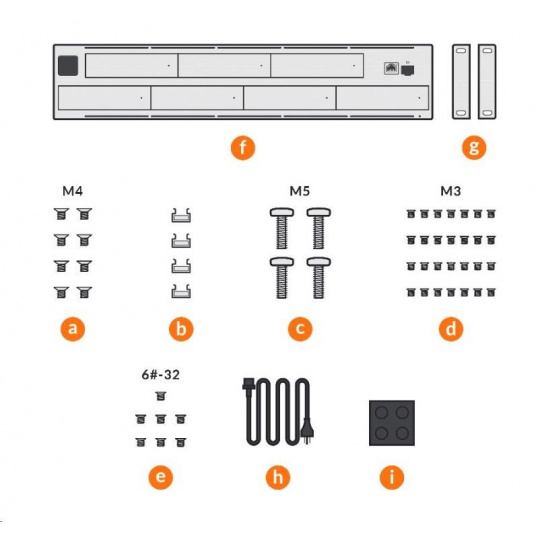 - Šroubky na přichycení do racku