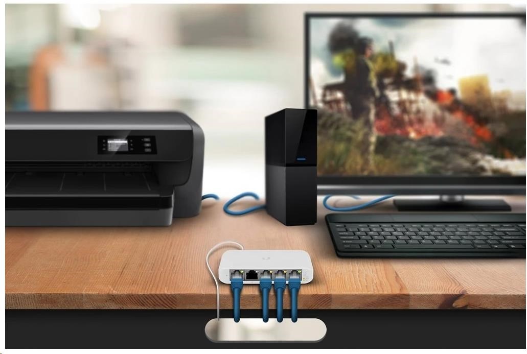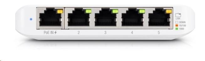 USW-Flex-Mini je maličký 5-portový Gigabitový switch se správou přes UniFi Controller od Ubiquiti Networks v desktop provedení s prvním portem podporující PoE In.