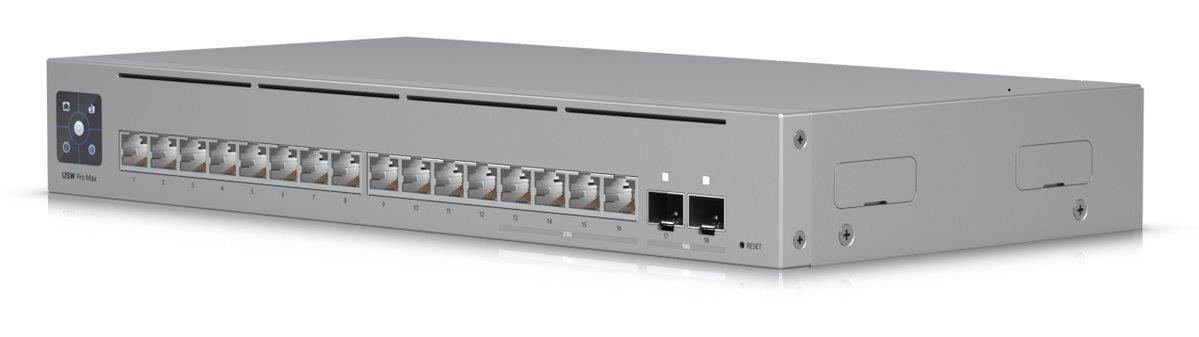 Popis produktu Ubiquiti Pro Max 16 je novým L3 switchem, který nabízí 4x 2.5 Gbps a 12x 1 Gbps porty. Pro připojení pomocí optického rozhraní jsou připraveny 2 SFP+ porty dosahující rychlosti až 10 Gb/s. Switch je napájen přes USB-C konektor 5V DC 25W. Etherlighting technologie Switch podporuje technologii Etherlighting, která umožňuje barevně indikovat lokaci portu, linkovou rychlost, nadefinované typy zařízení, PoE status nebo barevně odlišit jednotlivé VLAN. *pro správnou funkci je doporučeno použít Ubiquiti UniFi Etherlighting Patch kabely Správa přes UniFi Controller Switch nemá webový management, ale je spravován centrálně pomocí UniFi Controlleru s podporou mobilní aplikace UniFi a nabízí rozsáhlou sadu pokročilých přepínacích protokolů a funkcí L2, včetně provozního režimu (přepínání, zrcadlení nebo agregace) na port. UniFi Network Controller a mobilní aplikace umožňují správcům konfigurovat a sledovat prakticky všechny funkce přepínače v grafickém uživatelském rozhraní odkudkoli. Obsah balení • Zařízení • Napájecí DC adaptér • Montážní set Kontakt: Ubiquiti International Holding B.V. Ekkersrijt 3102, 5692 CC Son en Breugel support@ui.com Technická podpora k tomuto produktu je dostupná na emailu rma@discomp.cz, telefonním čísle (+420) 377 477 794, případně odesláním dotazu přes webový formulář. Naše technická podpora je dostupná v této pracovní době. Obchodní informace Dan Pacanda, +420 370 380 965 , dan.pacanda@discomp.cz Technické parametry Konektory a rozhraní Rychlost LAN:(12) 10/100/1000Mbps + (4) 10/100/2500Mbps Optické rozhraní:(2) 1G/10Gbps Ostatní:Dotykový displej Napájení Typ napájení:USB-C Max. spotřeba energie [W]:25 Napájení přes konektor/svorkovnici:5V DC Fyzické charakteristiky Provedení:Na zeď, Desktop, Rackmount Ventilátory:Ne Šasi:Kovové Tlačítka:Reset Provozní teplota [°C]:-5 až 40 Šířka [mm]:325 Výška [mm]:44 Hloubka [mm]:160 Obecné Rychlost přepínání [Gbps]:84 Rychlost předávání paketů [Mpps]:62 Software Management:UniFi Network Funkce:VLAN, DHCP snooping, L3 Výchozí IP adresa:Dynamická z DHCP.