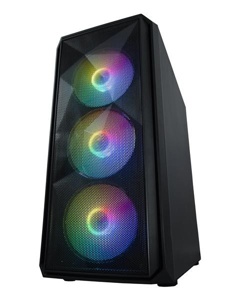 VeinX case ME19A Mid Tower, bez zdroje, 1x USB3.0, 1x USB2.0, 4x 120mm ARGB Fan, 1x ARGB Controller, černá