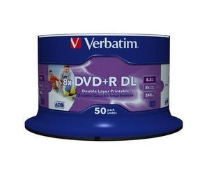 VERBATIM DVD+R(50-pack)DoubleLayer/Spindle/8X/8.5GB/Printable/NoID