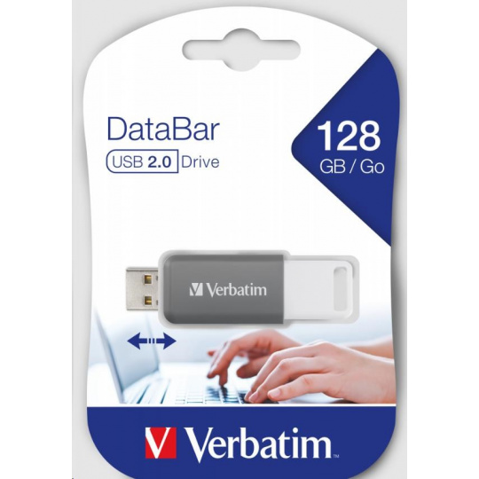 VERBATIM Flash Disk 128GB DataBar USB 2.0 Drive, šedá