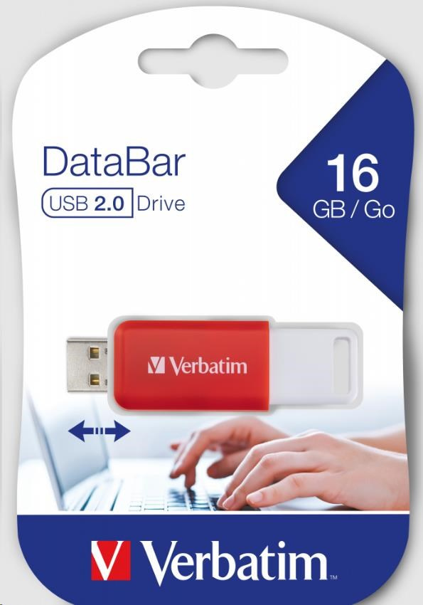 VERBATIM Flash Disk 16GB DataBar USB 2.0 Drive, červená