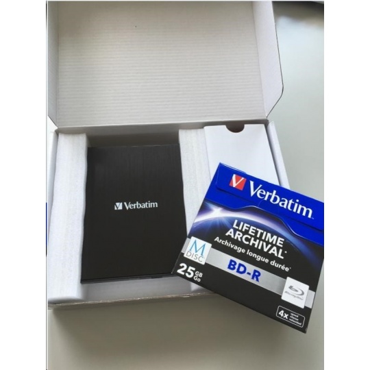 VERBATIM externí mechanika Slimline Blu-ray Rewriter USB 3.0 Zdarma BR Disc 25GB (CD DVD BD Mdisc) +NERO