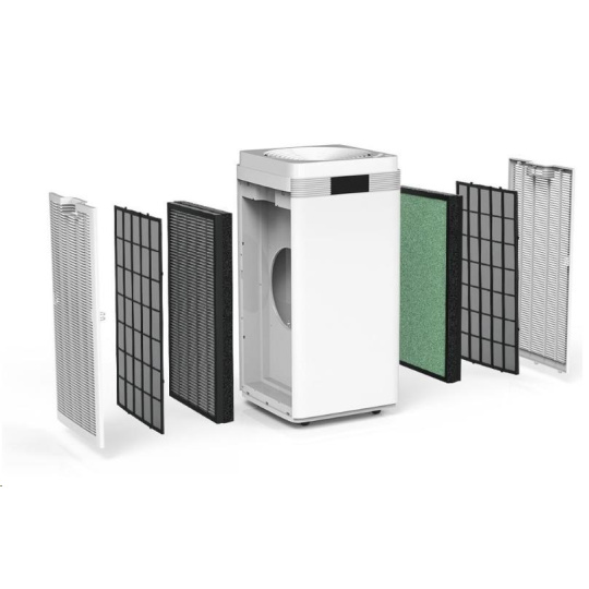 - 2x 4 stupňová filtrace včetně ™?HEPA filtrace a filtrační vrstvy studeného katalyzátoru, který účinně rozkládá organické sloučeniny a toxické látky, stejně jako UV lampa.