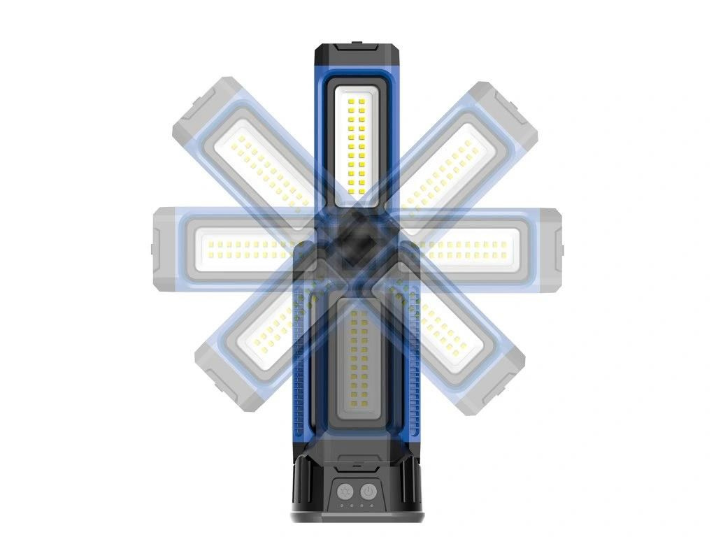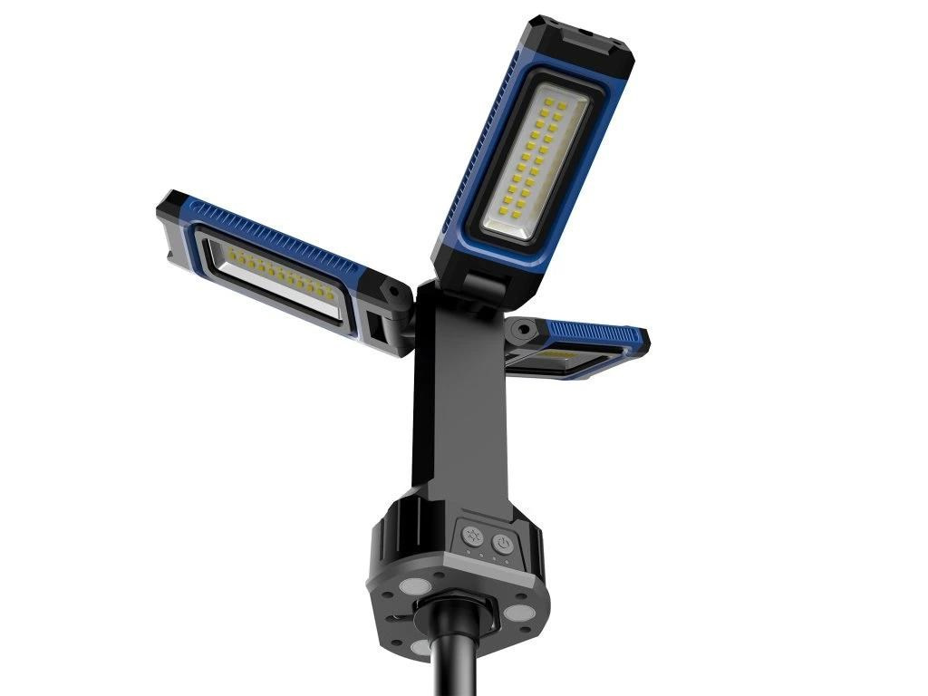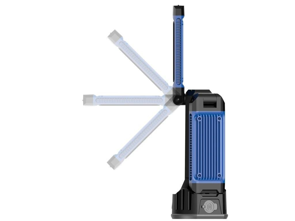 | Režim ovládání: | Rozložte pracovní světlo a postavte jej. Stisknutím vypínače ON/OFF aktivujete světlo a následně jednotlivými stisknutími přepínáte mezi jednotlivými světelnými módy až do případného vypnutí. Stisknutím vypínače ON/OFF (ikona slunce/ikona světla) upravujete barvu světla. Hlavici světla lze dle potřeby odmontovat. |