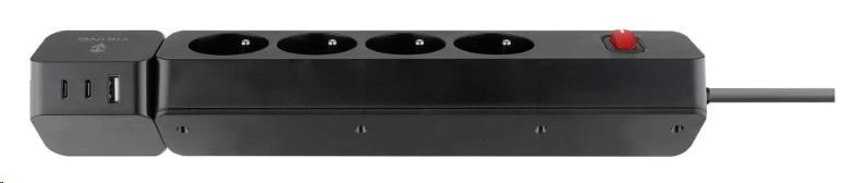 Viking síťová prodlužovací zásuvka R43S, 4x AC 230V, 1x USB-A, 2x USB-C, délka 1,4 m