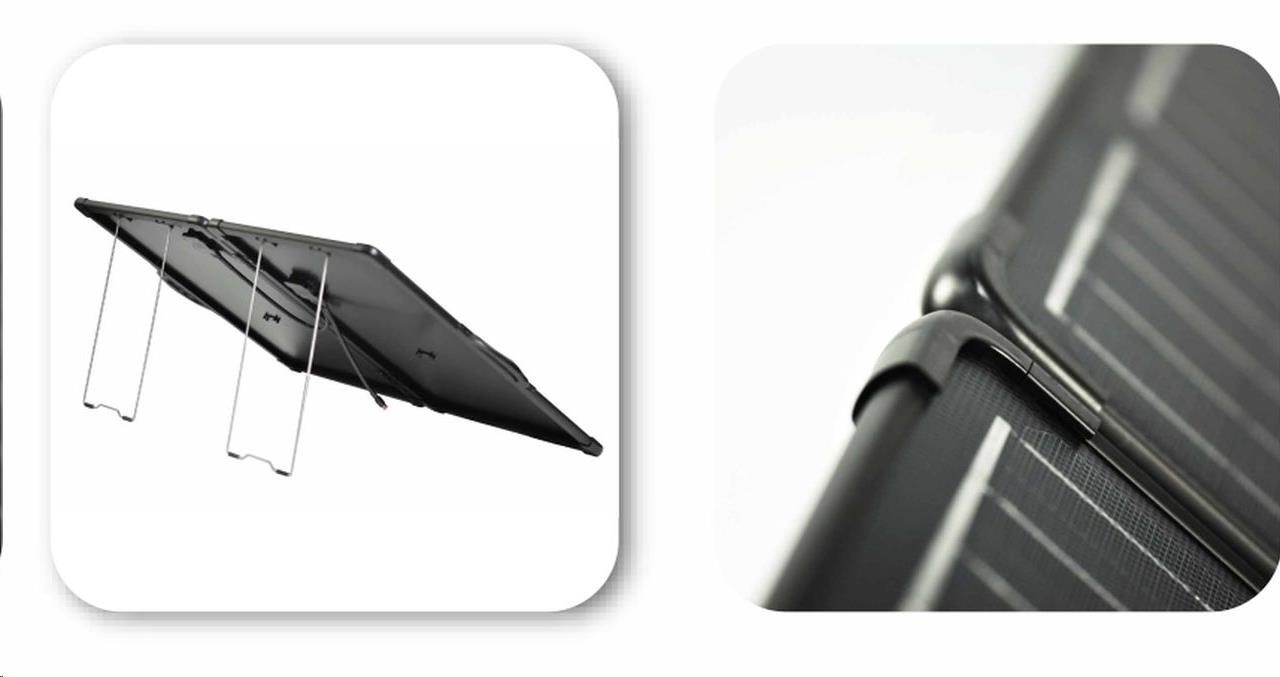 - Pouze 50% hmotnosti proti konvenčnímu, skládacímu solárnímu panelu.