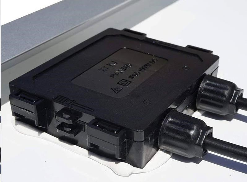 Voděodolný výstup má integrované bypass diody pro ochranu před zpětným proudem a je vysoce odolný proti extrémním projevům počasí, jako jsou vysoké a nízké teploty, námraza, silný déšť nebo vítr.