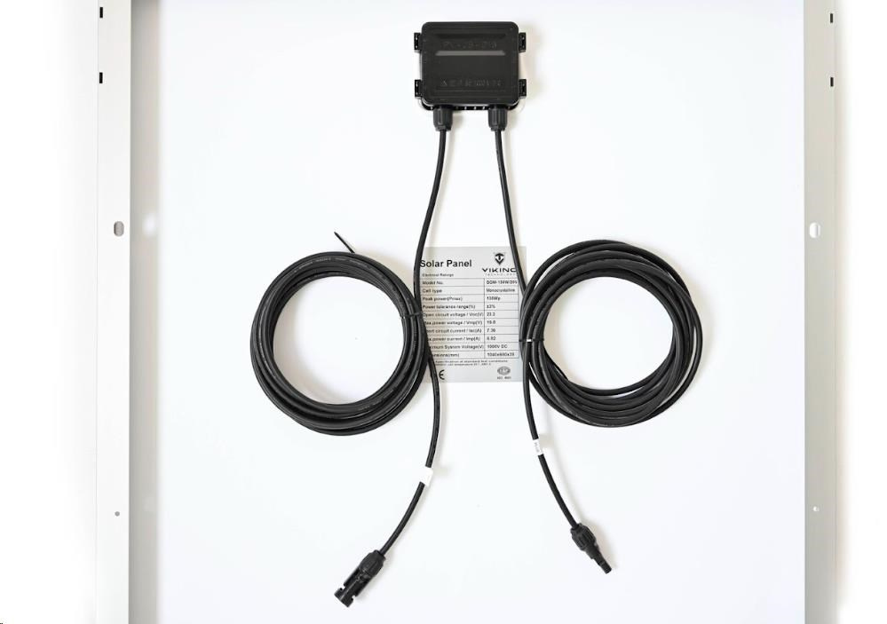 - Solární panel je osazen napájecími kabely s délkou 5m s koncovkami MC4.