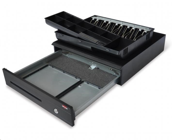Virtuos pokladní zásuvka C425C, s kabelem 24V, kov. držáky, 9-24V, černá