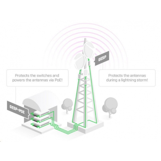 GESP+POE-IN je pasivní Gigabitový PoE injektor s integrovanou přepěťovou ochranou ethernetu pro ochranu proti přepětí s jedním ethernetovým portem z druhé strany vyvedeným kabelem s RJ45 konektorem a zemnícím kabelem zakončeným očkem. Tato verze je určena pro vnitřní použití na port u switche či routeru, který směruje k venkovní CPE jednotce.