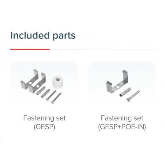 Součástí balení je kromě samotné přepěťovky také hmoždinka se šroubkem a speciálním kovovým plíškem pro přichycení na zeď nebo do racku.