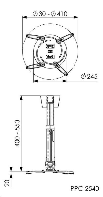 Teleskopický stropní držák na velký projektor 40-55 cm